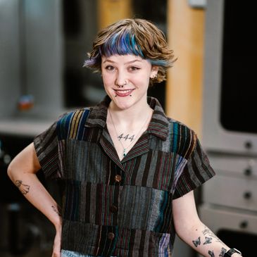 Lexi brings confidence and care to every service, especially when it comes to short cuts, vivid colors, and textured hair. From years of cutting friends’ and family’s hair, she’s developed a sharp eye for detail and a passion for learning. She was lucky enough to experience the Chicago Hair Show and learn from some of the best. She’s currently expanding her expertise in curly and wavy hair, with a goal of helping clients understand their texture, product choices, and the why behind what works.